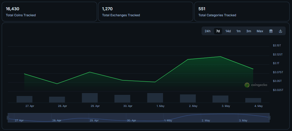 This chart tracks the total market capitalization of Web3-related crypto assets, reflecting the combined value of decentralized apps, infrastructure tokens, and blockchain-based web services. It offers insight into the overall health and investor interest in the Web3 sector.